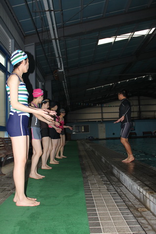 由於水溫對於女孩子或是初學者 都過於低