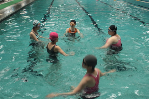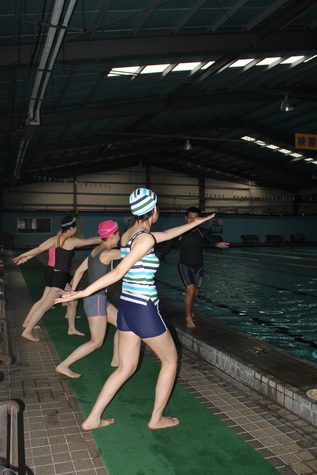 開始在水中練習嚕 水中暖身!!