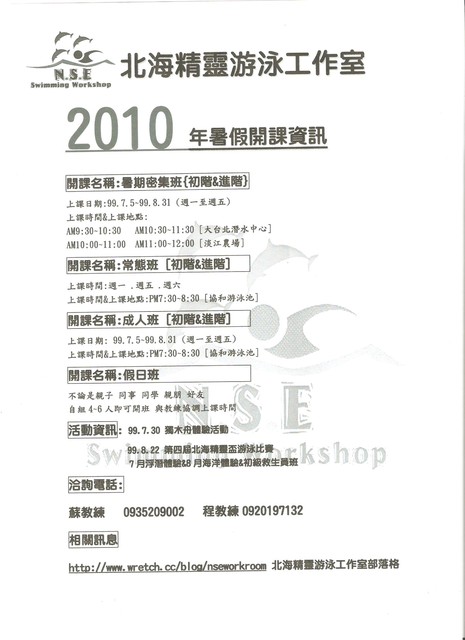 上課時間&上課地點:PM7:308:30 [協和游泳池]