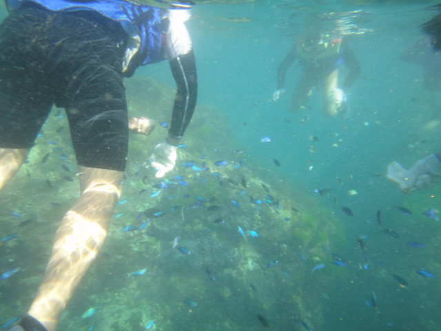 海底餵食秀來嚕!! 手上的東西叫做吐司!!!